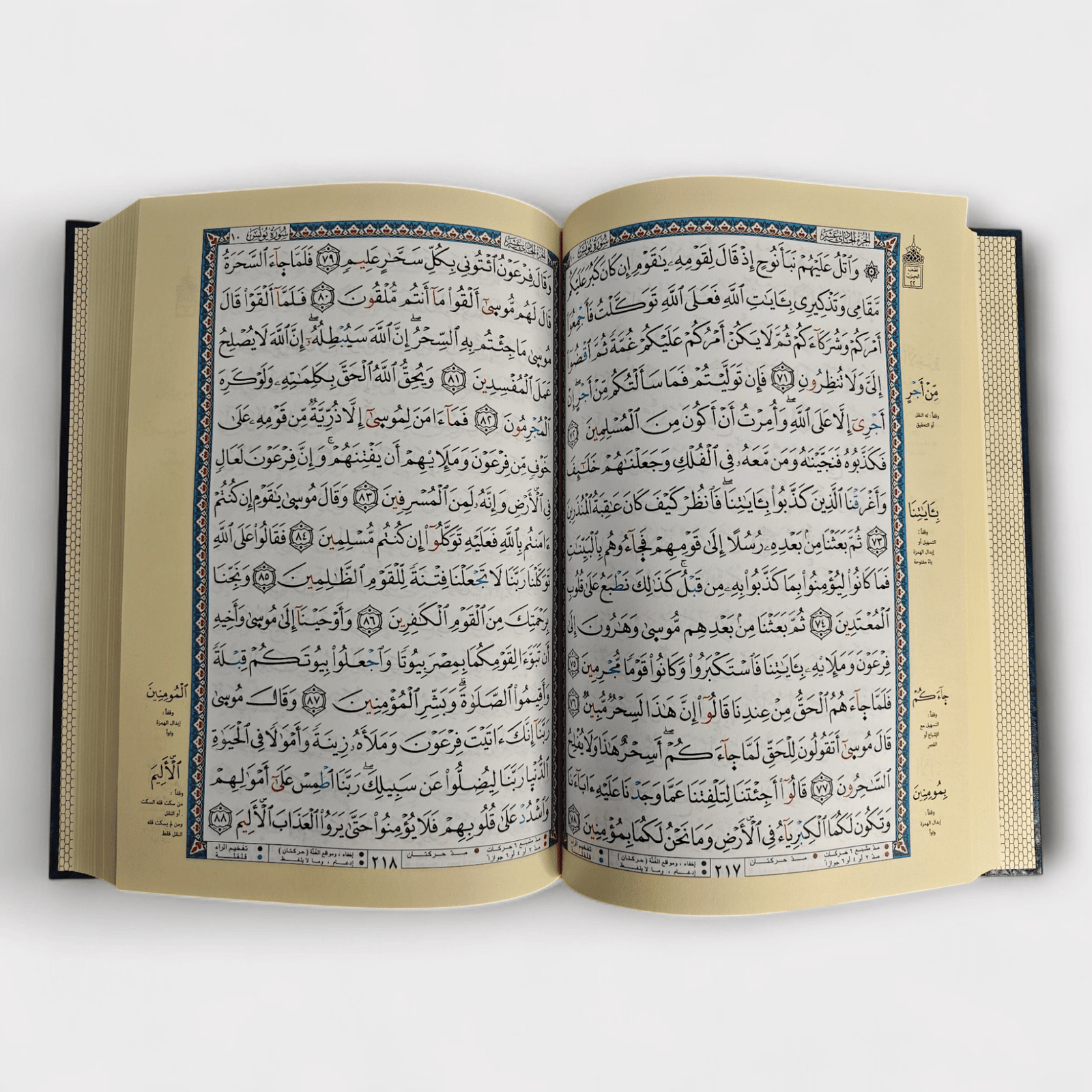 بحجم 17 × 24 سم، مصحف تجويد موجّه للتعلّم المتقدّم والتطبيق الدقيق للأحكام.