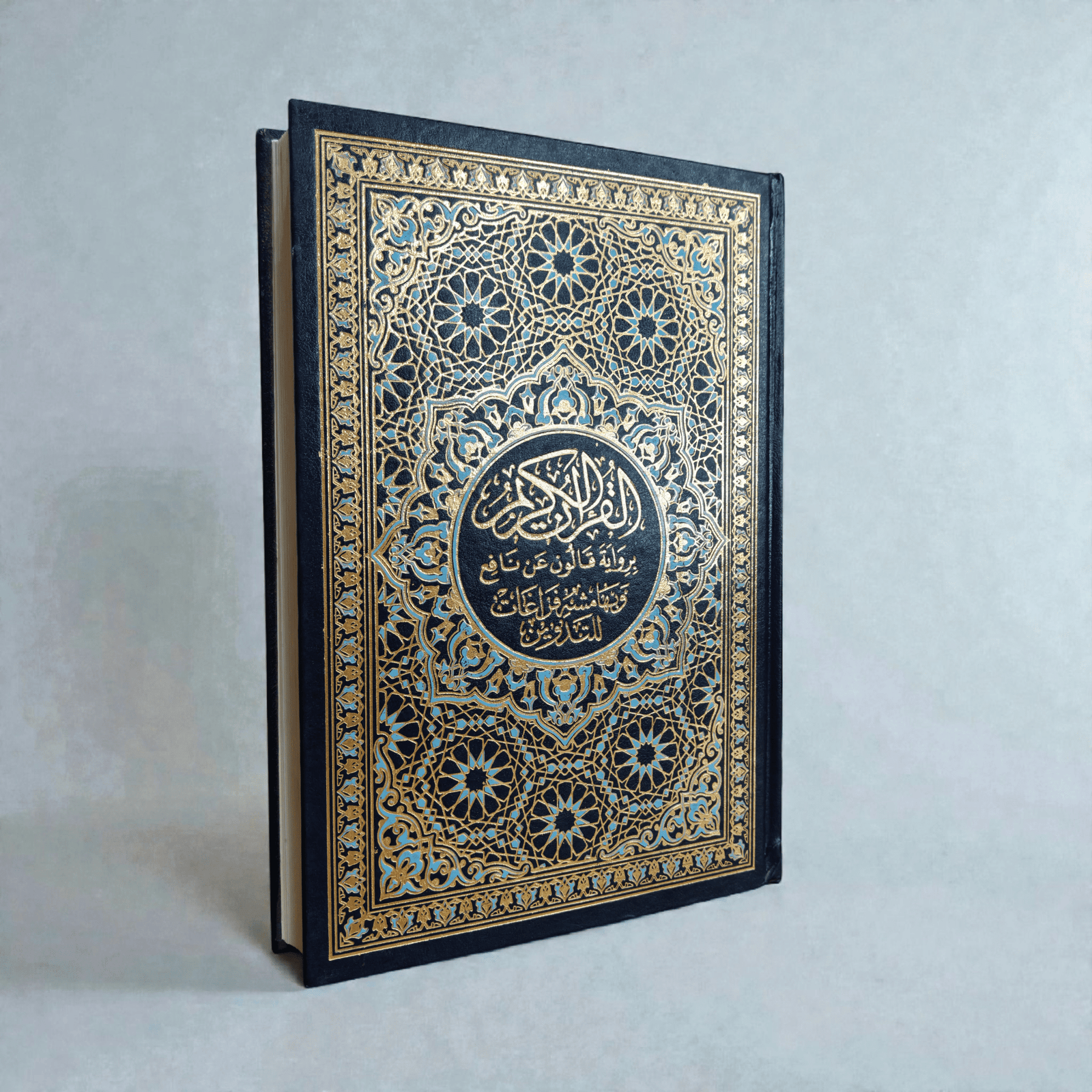 برواية قالون عن نافع وبحجم 17 × 24 سم — مصحف بهوامش واسعة للتدبر وتدوين الملاحظات.