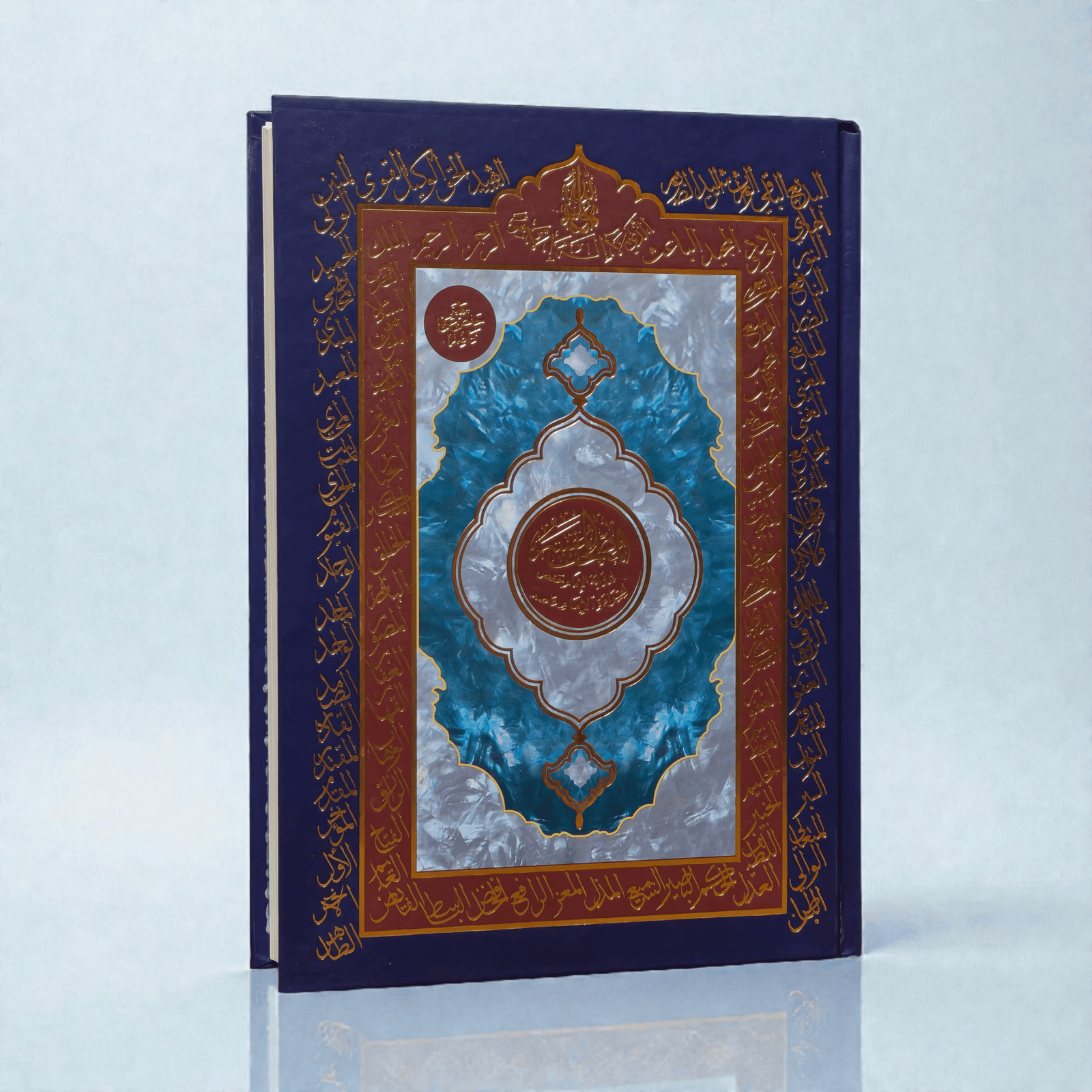 بحجمه المتوسط وخطه الواضح، يجمع هذا المصحف بين سهولة الحمل وراحة القراءة، مع تنسيق عملي يوازن بين النص والتفسير دون ازدحام بصري.